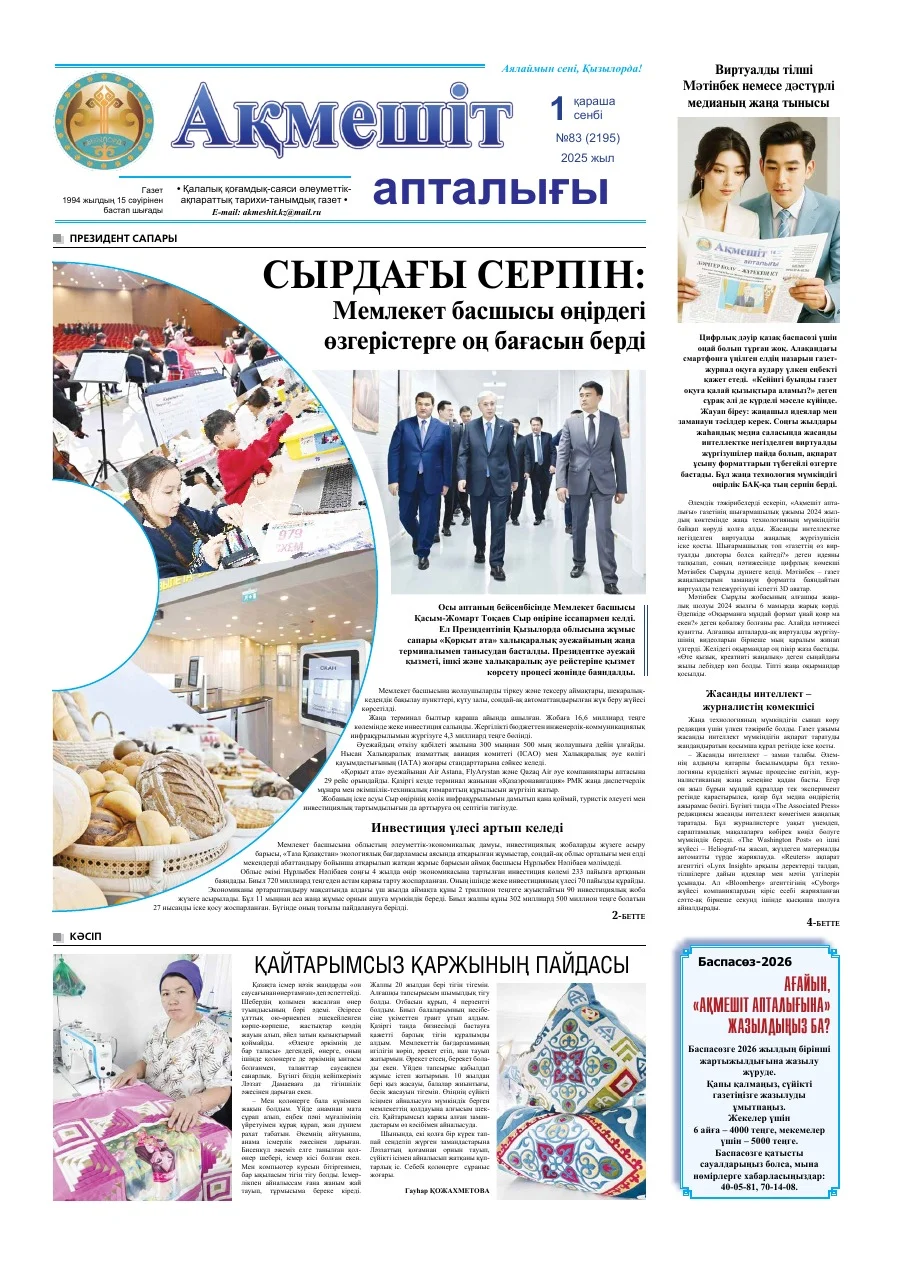 Жылдам ақпарат алу үшін Facebook, Instagram желілері мен Telegram каналымызға жазылыңыз!