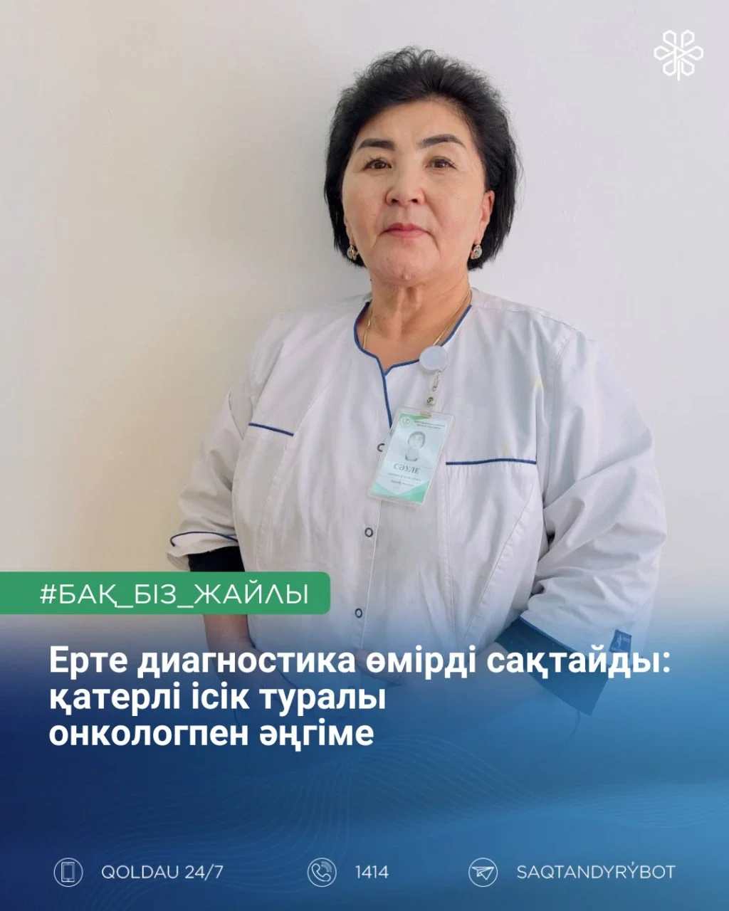 Сұхбат барысында Шиелі аудандық көп бейінді орталық ауруханасының онколог-дәрігері Сәуле Жансарина ерте диагностиканың мүмкіндіктері, қатерлі ісік даму қаупін арттыратын себептері және өзін-өзі емдеудің қауіптілігі туралы айтып берді.