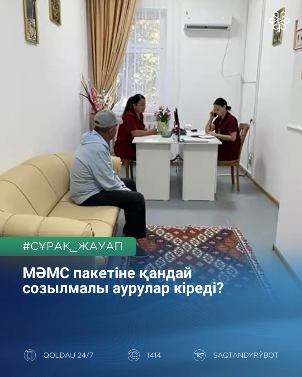 Міндетті әлеуметтік медициналық сақтандыру пакетіне диспансерлік есепте тұрған азаматтардың бірқатар созылмалы аурулары бойынша бақылау мен емдеу енгізілді.