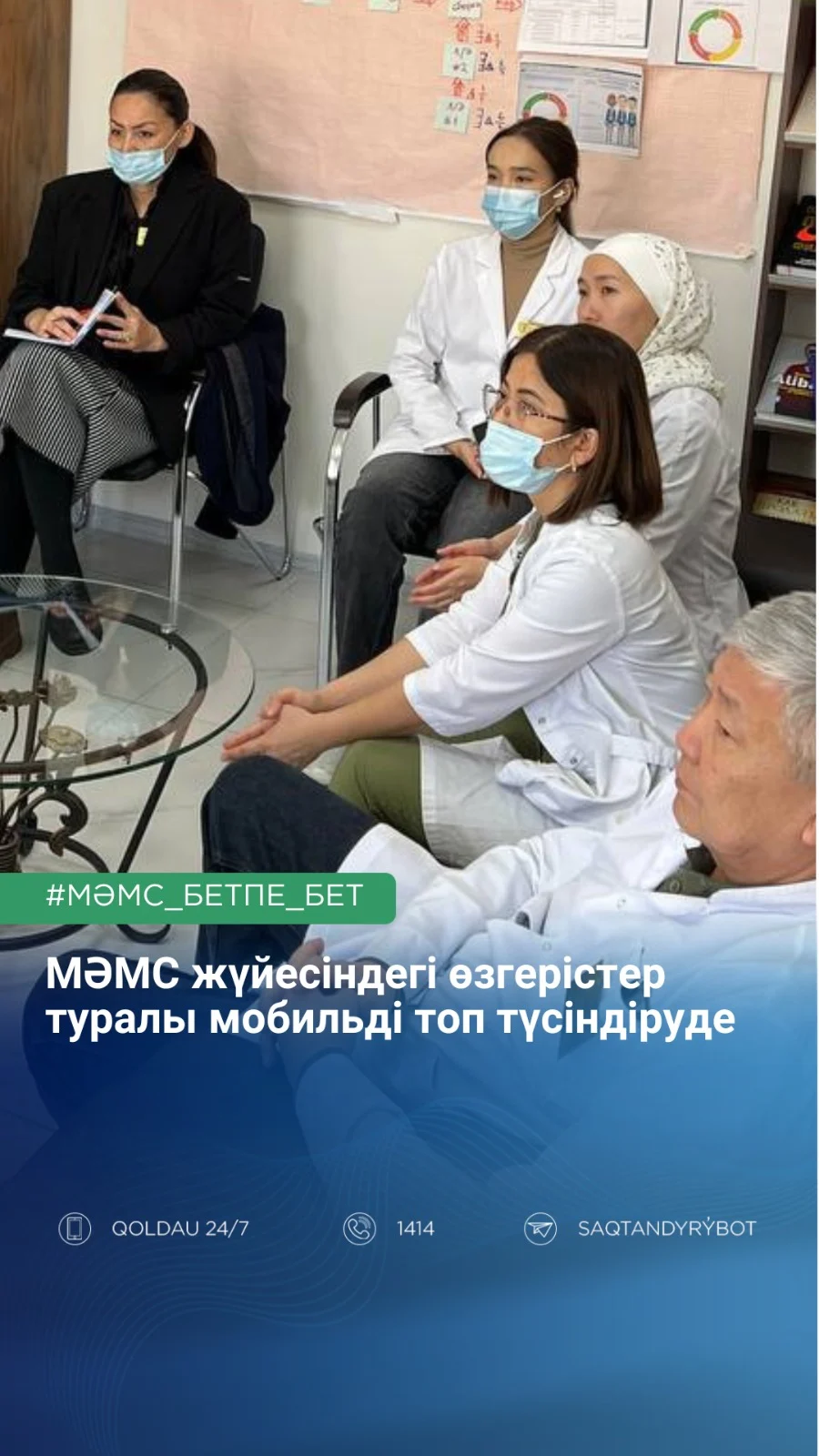 Өңірде «Міндетті әлеуметтік медициналық сақтандыру туралы» заңға енгізілген жаңа өзгерістерге қатысты халық арасында ақпараттық-түсіндіру жұмыстары күшейтілді. Осы күндері арнайы мобильді топ аймақтағы медициналық ұйымдардың ұжымдарымен кездесулер өткізуде. Оның құрамына Әлеуметтік медициналық сақтандыру қоры филиалының, облыстық денсаулық сақтау басқармасының және Республикалық электрондық денсаулық сақтау орталығы филиалының мамандары кірді.