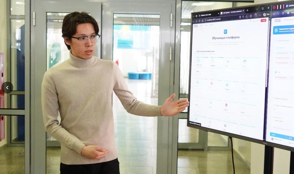 – Бұл – кез келген бағдарламалауға қызығатын адамға тегін және қолжетімді оқу платформасы. Біздің gmlms.kz сайтымызға кіріп, тіркеліп frontend, backend, full-stack тағы басқа бағыттар бойынша курс өтуге болады.