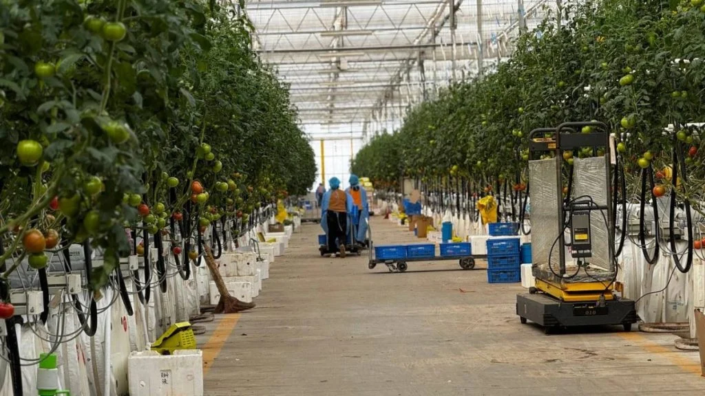 Қорғас қаласындағы заманауи ауыл шаруашылығы технопаркінде қызанақ, шие қызанақ және қияр өсіріледі. Қандасымыз Өркен Ноғайбек қызанақты өсіру технологиясын түсіндірді.