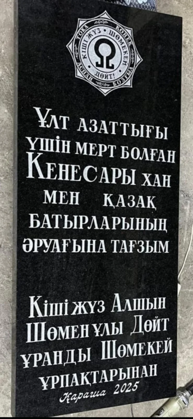Осындай тастұғырды Майтөбеге жуырда шөмен-шөмекей тайпасына қарасты тоқа, көнек, аспан, бозғұл руының ұрпақтары қойды. Мұратбек Есболов қойған қара түсті гранитке: «Ұлт азаттығы үшін мерт болған Кенесары хан мен қазақ батырларының аруағына тағзым. Кіші жүз, Алшын, Шөменұлы Шөмекей ұрпақтарынан, қараша, 2025 жыл» деп жазылған.