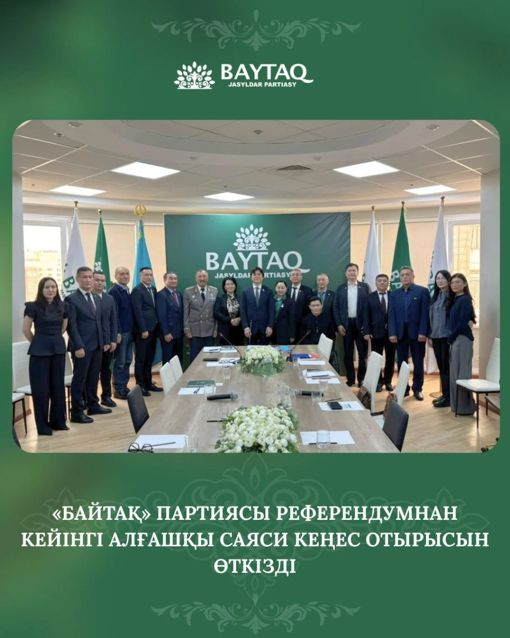 2026 жылғы 16 наурыз күні Астана қаласында Қазақстанның «Байтақ» жасылдар партиясының Саяси кеңесінің отырысы өтті. Бұл – жаңа Конституция бойынша өткен референдумнан кейін ұйымдастырылған алғашқы маңызды жиын.