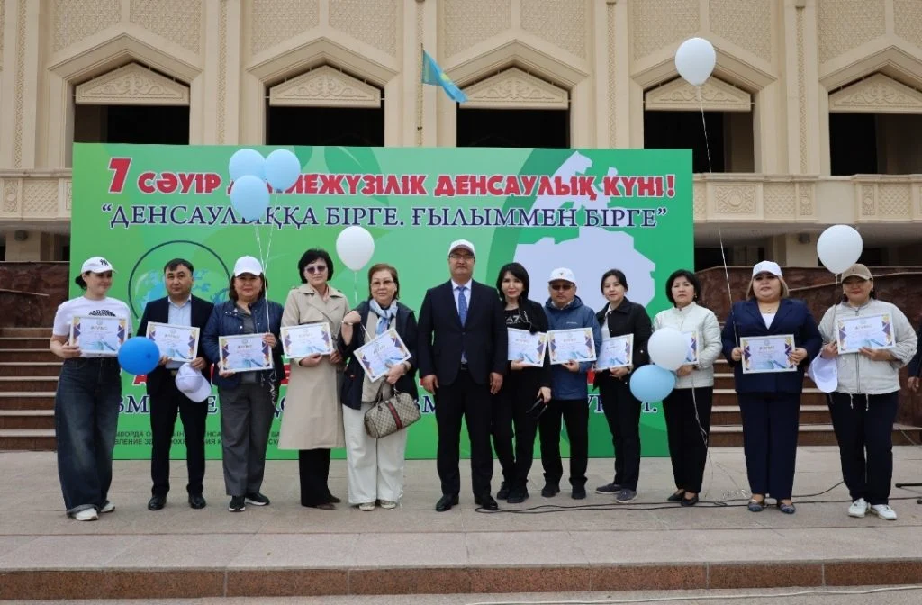 «7 сәуір – Дүниежүзілік денсаулық күніне» орай, ұлттық бағдарлама тұжырымдамасына сәйкес қалалық орталық алаңда «Денсаулыққа бiрге! Ғылыммен бiрге!» ұранымен жаппай дене жаттығуы мен флешмоб ұйымдастырылды.