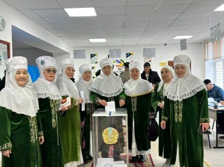 Қазалы қаласындағы №66 учаскеде “Ғибрат әжелер” ансамблі республикалық референдумға қатысып, өз таңдауларын жасап, дауыс берді. Ақ жаулықты аналарымыз ел болашағына бейжай қарамай, азаматтық белсенділіктің жарқын үлгісін көрсетті. Олар жас ұрпаққа өнеге болып, ел тағдырына жауапкершілікпен қараудың маңызын тағы бір мәрте дәлелдеді.