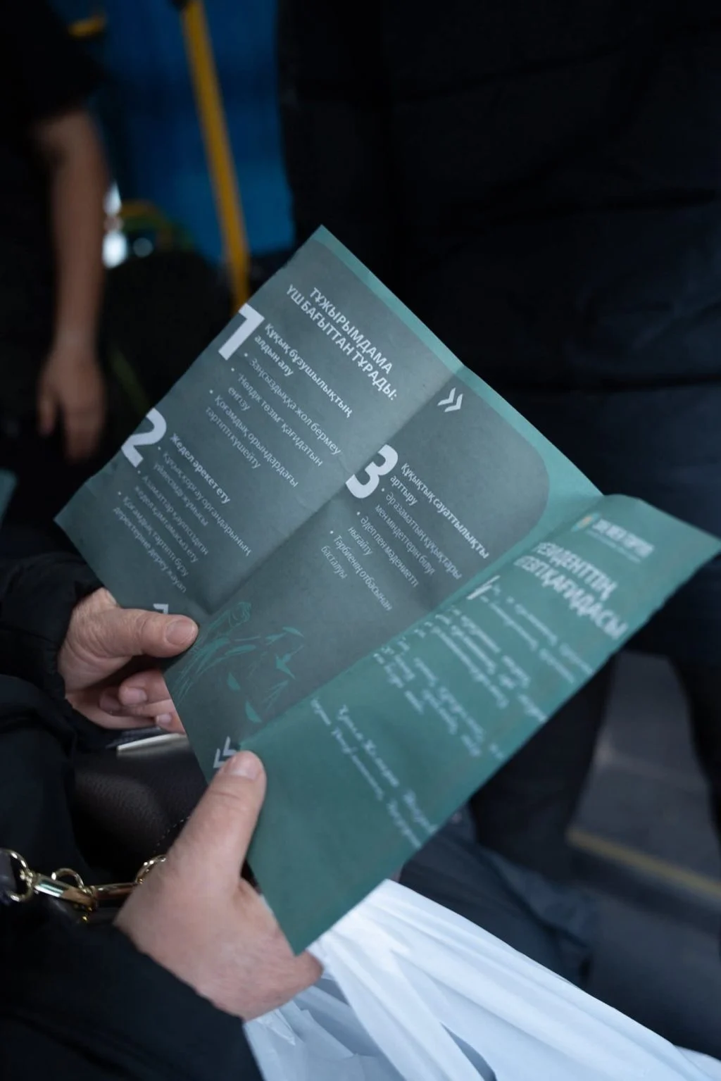 Қала тұрғындары мен жастар арасында құқықтық мәдениетті арттыру және қауіпсіздік қағидаттарын кеңінен насихаттау мақсатында жүргізіліп келе жатқан ақпараттық-түсіндіру жұмыстары жаңа деңгейге шықты. Бұған дейін қоғамдық кеңістіктер мен әлеуметтік желілер арқылы жүзеге асқан түсіндіру шаралары енді қала ішіндегі қоғамдық көліктерде де кеңінен жүргізілуде.