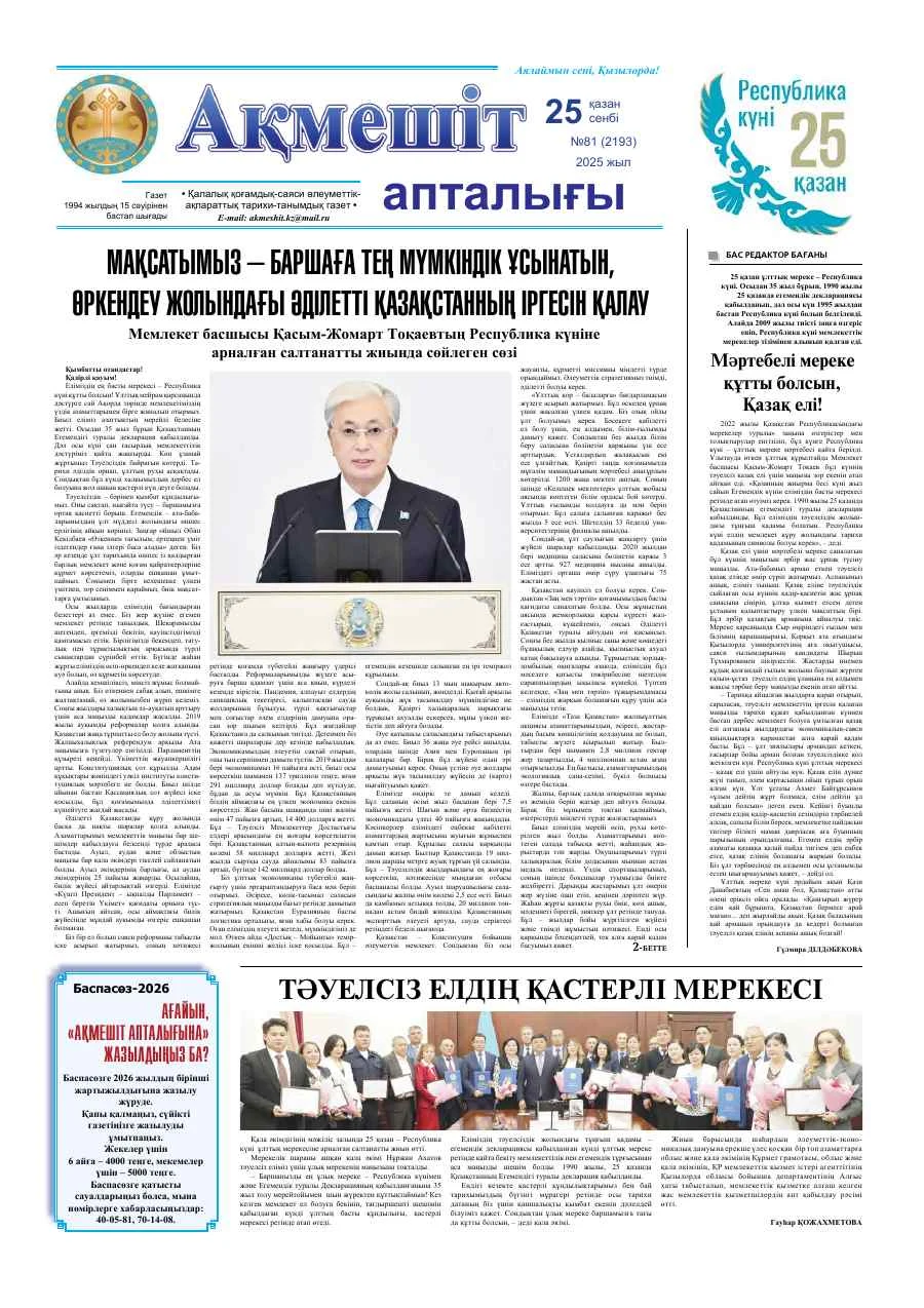Жылдам ақпарат алу үшін Facebook, Instagram желілері мен Telegram каналымызға жазылыңыз!